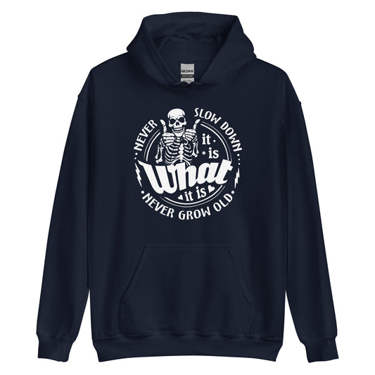 It Is What It Is Never Slow Down Never Grow Old Hoodie
