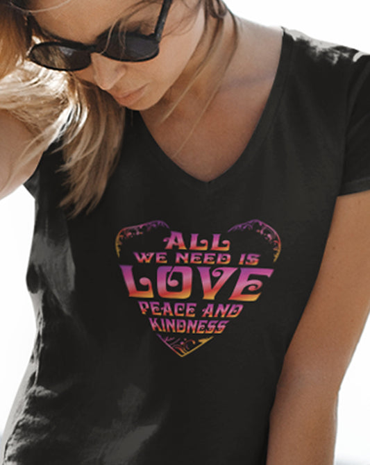All We Need Is Love, Peace and Kindness V-Neck T-Shirt