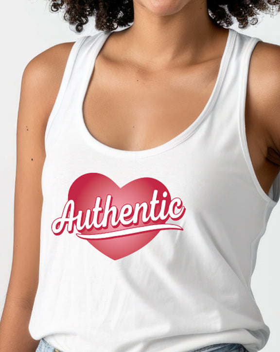 AUTHENTIC HEART TANK TOP. Looking great in 100% combed and ringspun cotton for superb quality and softness. Made under the Natureful Soul private label and printed in the USA. Check your measurements with the size chart to confirm the correct size. Choose from 4 colors: black, navy, silver, or white.