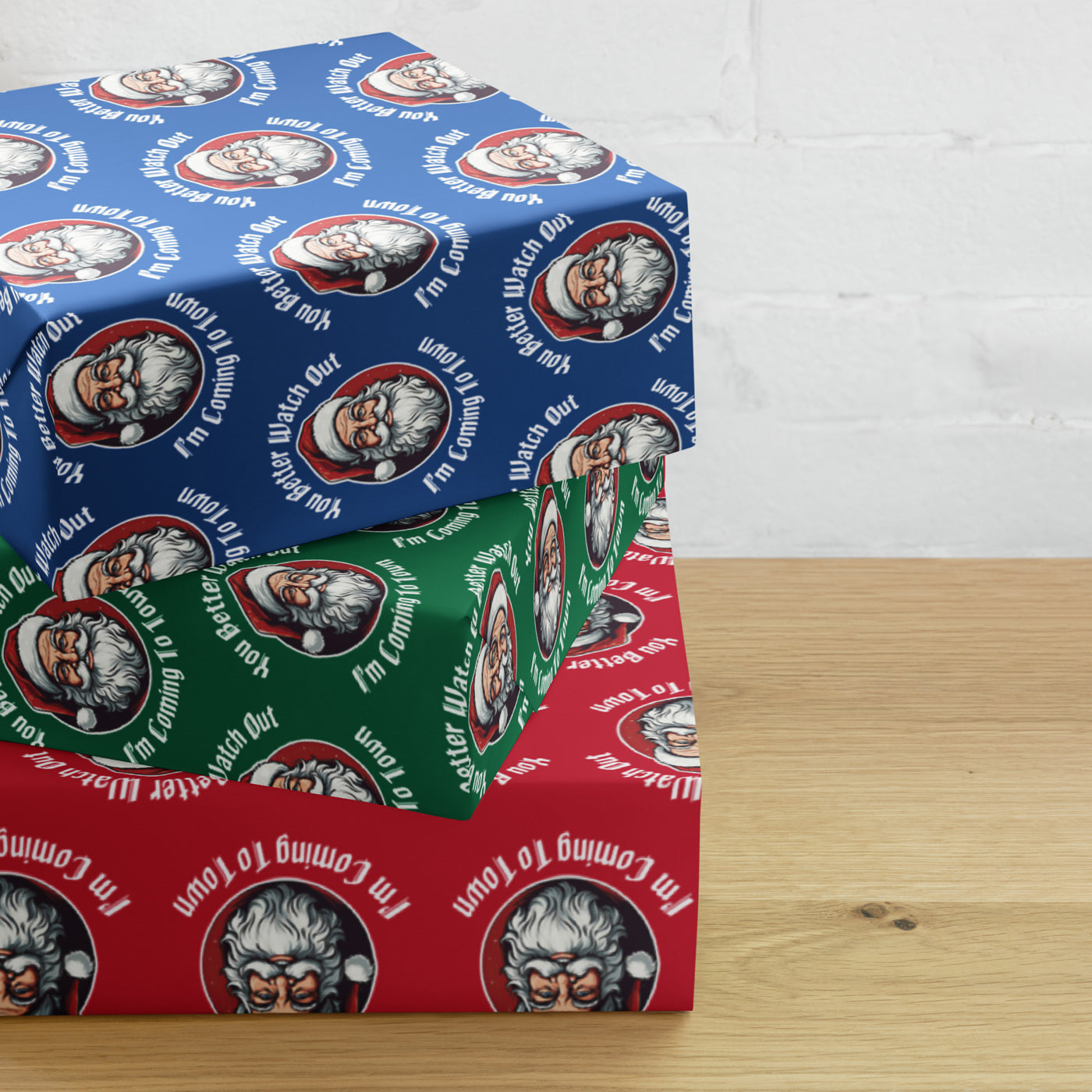 You Better Watch Out I'm Coming To Town gift wrap paper